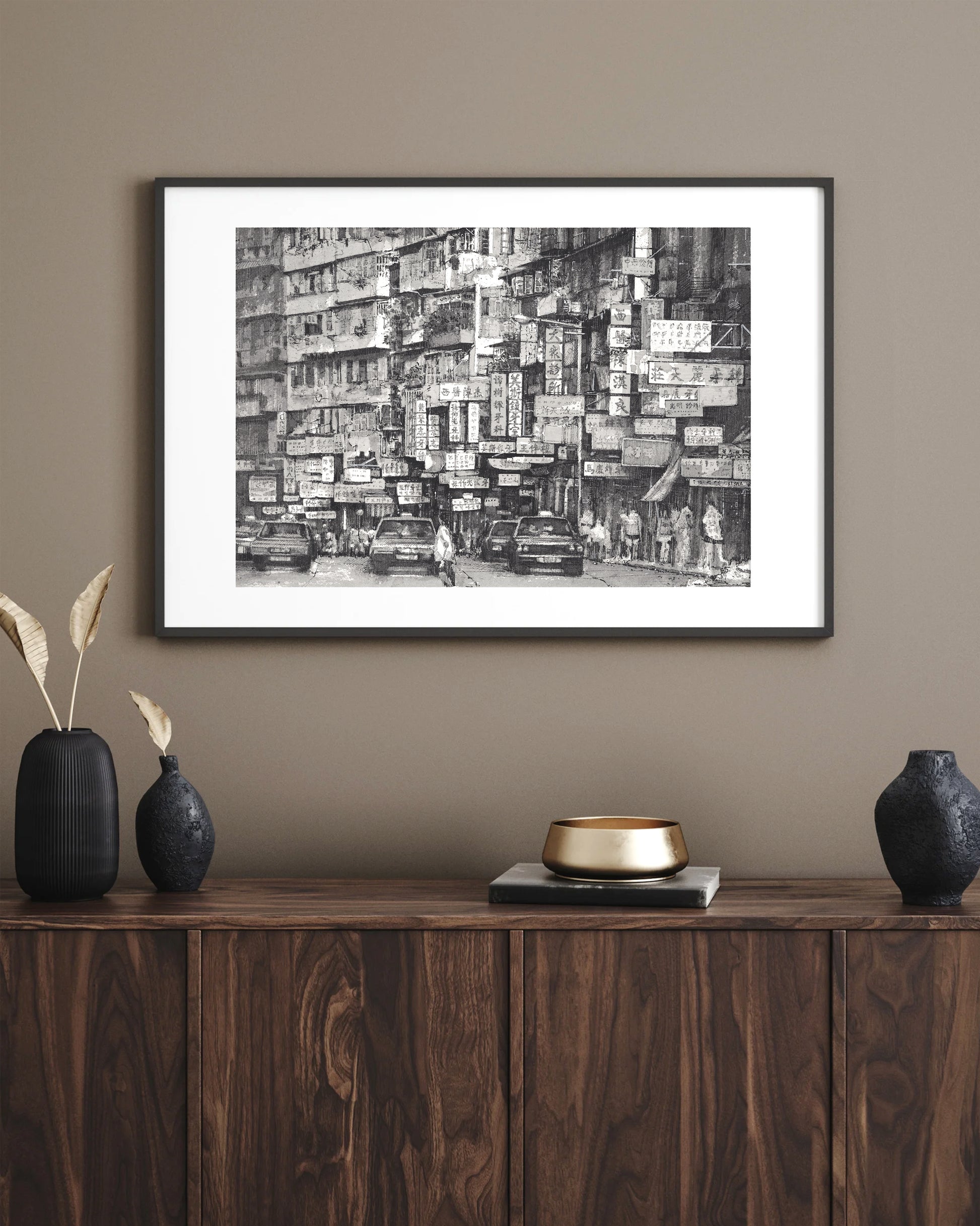 This pen and ink drawing captures the dense, chaotic beauty of Hong Kong’s Kowloon Walled City before its demolition in 1993. The view reveals the ad hoc layering of apartments and businesses - uneven floors, hanging signs, and narrow overhangs forming a maze of life. Often described as a lawless place, the Walled City was, in truth, a self-built and self-organised community full of energy, resilience, and human warmth. Through intricate line work, this piece explores the balance between architectural chaos and quiet humanity.